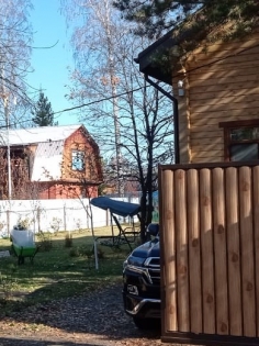 Въезд на частную территорию, ворота сварные, заполнение металоштакетник.