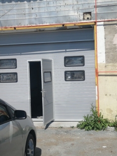 Установка ворот на СТО. Здание старое, проемы вырезали в стене, стены кривые, пришлось по периметру наваривать трубу 80х40 для монтажа ворот.