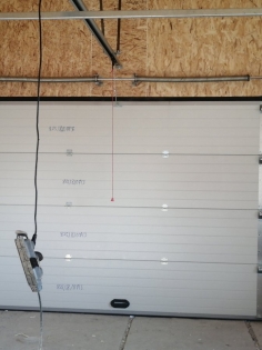Частный гараж, потолки высокие, но клиент не хотел переплачивать за повышенный подъем, т.к. нужна автоматика, а автоматика на повышенный подъем может быть только осевая, а она в 3е дороже потолочной, поэтому сделали дополнительные подвесы и установили ворота с стандартным подъемом.